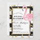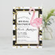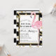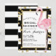 Invitation Flamant Rose Rayures Noir Blanc & Confettis Dorés