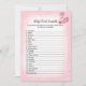 Profitez de jouer à ce jeu de baby shower Baby Word Scramble sur un arrière - plan rose doux avec de mignons triangles dorés. Une maman de ballerine flamand chéri et bébé dans le coin inférieur gauche avec des fleurs roses sur la tête et à côté du corps. Des modèles ont été fournis sur le dos.