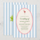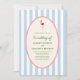Celebrate your special day with a playful retro tropical vibe! This wedding invitation features a soft blue striped background, a charming pink flamingo, and a rope-bordered oval frame with green text. Perfect for couples who love whimsical elegance with a touch of island flair.
