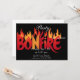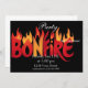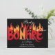 Une illustration numérique d'une invitation de fête de fin d'études avec des flammes de feu de camp. Un design graphique avec le mot feu de camp dont les lettres sont intégrées dans les flammes.