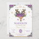 Cette belle invitation au renne présente un renne mignon, de jolis flocons de neige à l'aquarelle violette et à la parties scintillant d'or. Personnalisez-le avec vos détails de fête facilement et rapidement, appuyez simplement sur le bouton customiser pour réorganiser et formater le style et le placement du texte. Idéal pour TOUT ÂGE!