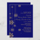 Flammes de neige dorées invitation de mariage nuptiale d'hiver bleu qui comprend des flocons de neige dorés suspendus sur l'arrière - plan bleu. Un design moderne et contemporain pour votre mariage d'hiver de décembre ou de Noël. Ce design rétro modèle fait partie d'un ensemble mariage, est entièrement personnalisable et peut être personnalisé.