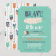 Notre Brave Little One, Tribal Arrows Première fête d'anniversaire Blue Green et Orange Boho Invitation.