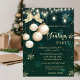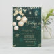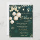 Boules de Noël élégantes, flocon de neige, arc et lampes à cordes sur arrière - plan vert. Ces belles invitations de Noël sont parfaites pour les invitations à des dîners de Noël, les invitations à des échanges de cadeaux de Noël, les collectes de fonds de Noël, les invitations à des fêtes de Noël, et d'autres événements qui ont lieu pendant le mois de décembre. Il vous suffit d'utiliser les champs modèle pour ajouter vos propres informations d'événement.