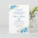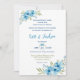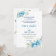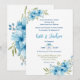 Des accents floraux aquarelles bleus fantaisistes et des polices visuellement agréables font une élégante invitation de mariage, évoquant l'adage "Quelque chose d'ancien, quelque chose de nouveau, quelque chose d'emprunté et quelque chose de bleu". Surtout formel de style, avec des éléments plus décontractés tissés, ce design mélange sans heurts les esthétiques vintage et modernes.