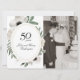 Invitation Fleur aquarelle Photo Or 50e Anniversaire