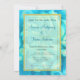 Une invitation de mariage à thème au printemps aux couleurs pastel. Fleur peinte aux aquarelles turquoise et verte. L'image zoome et se concentre près du centre de cette belle fleur. Pétales délicats et doux, turquoise, vert d'eau et bleu clair. Les tons pastel de cette image romantique et tendre créent un sentiment de magie et d'émerveillement. Entrez vos détails de mariage dans une boîte semi-transparente encadrée dans une double bordure en or fantaisie.