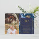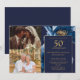 Cette élégante invitation d'anniversaire de mariage de 50 ans avec fleurs en bleu marine et or peut être personnalisée avec vos informations en typographie moderne et deux photos spéciales. Conçue par Thisisnotme©