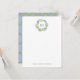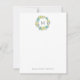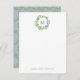 Une jolie ligne dessinant des couronnes florales encadre un monogramme d'une seule lettre avec des fleurs turquoises, lilas et violettes. Cette carte à plat personnalisée est un ajout frais et élégant à la correspondance écrite de n'importe quelle femme.