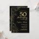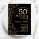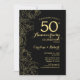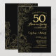 Invitation de fête du 50e anniversaire de mariage Black Gold Floral. Design moderne minimaliste avec des dessins de contours botaniques et une typographie en police de caractères script. Carte d'invitation élégante parfaite pour une célébration élégante. Peut être personnalisé pour n'importe quelle année de mariage. Invitations Zazzle imprimées ou modèle numérique imprimable à télécharger instantanément.