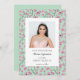 Créez une carte de dates personnalisée pour les fêtes de quinceañera et autres événements spéciaux. Cette carte est prête à être customisée avec votre propre photo et personnalisée avec tout votre propre texte. Cette carte a une bordure de jolies fleurs de cerisier rose sur un arrière - plan vert menthe. Avec un graphique en fleurs de cerisier coordonné au verso.