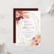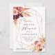 Cette invitation à la douche nuptiale présente des fleurs rustiques aquarelles en terre cuite, bordeaux, orange brûlé, jaune, broussailleux avec herbe pampa beige et marron, et un cadre géométrique or. Pour une personnalisation plus avancée de cette conception, cliquez sur le lien "customiser plus loin". Des articles correspondants sont également disponibles.