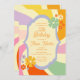 Invitation d'anniversaire d'inspiration rétro avec des polices et des couleurs de style années 70.