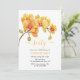 Elégante branche d'orchidée jaune aquarelle dans un fond blanc invitation anniversaire. Personnalisation facile pour le nom, l'âge et les détails de l'événement selon vos besoins.