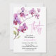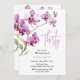 Elégante aquarelle branche orchidée violette dans un cadre blanc invitation anniversaire. Personnalisation facile pour le nom, l'âge et les détails de l'événement selon vos besoins.