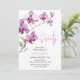 Elégante aquarelle branche orchidée violette dans un cadre blanc invitation anniversaire. Personnalisation facile pour le nom, l'âge et les détails de l'événement selon vos besoins.