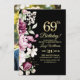 Un design moderne élégant avec le numéro 69 en or, des fleurs aquarelles et une photo spéciale de la personne qui fête son anniversaire au verso de l'invitation. Personnalisez les détails pour une célébration d'anniversaire unique et chic.