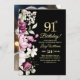 Un design moderne élégant avec le numéro 91 en or, des fleurs aquarelles et une photo spéciale de la personne qui fête son anniversaire au verso de l'invitation. Personnalisez les détails pour une célébration d'anniversaire unique et chic.
