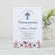 Célébrez votre journée spéciale avec cette belle première invitation de communion design. Ce design présente un beau cadre fleuri et une croix. Vous pouvez customiser tout le texte et la couleur arrière - plan.