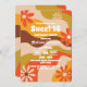 Ce design dynamique et psychédélique vous transportera à l'époque super des années 60 et les années 70. Les fleurs audacieuses et colorées apportent une touche fantaisiste à l'invitation, tandis que les polices rétro capturent l'essence de cette ambiance disco branchée. Parfait pour votre douce fête 16, cette invitation donnera le ton pour une fête amusante et mémorable. Faites passer l'amour et l'invitation vos amis pour vous rejoindre dans ce voyage super !