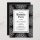 Invitations d'anniversaire de motif de fleur de mandala en noir et blanc.