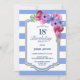 Bleu rayé fleuri 18ème anniversaire invitation à la fête.