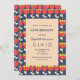 Cet élégant design super présente des fleurs rétro géométriques rouges et jaunes sur un arrière - plan bleu marine. Chaque texte est personnalisable selon vos besoins.