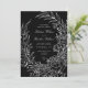 Fleur Noir Romantique Blanc Faire-part de mariage blanc Wreath pour un beau mariage formel élégant. Illustrations manuscrites originales. Mariage classique élégant.