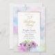 Une invitation à la fête de 70e anniversaire bleu et rose avec une bordure d'aquarelle peinte d'or et de pastel.