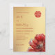Fleurs rouges sur un arrière - plan d'or. Faire-part de mariage chinois traditionnel avec un double symbole de bonheur rouge. Avec un modèle de texte chinois traditionnel à l'arrière.