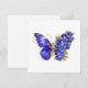 Jewelry, blue, sapphire, sparkling flower butterfly with wing decorated with blue, precious flowers with gold leaves on white background.