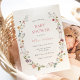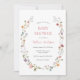 Baby shower invitation avec une couronne d'aquarelle de fleurs sauvages et de biberons. Customisez avec vos informations pour que la mère soit.