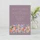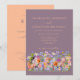 Faire-part de mariage à l'aquarelle de fleurs sauvages colorées de style bohème chic avec RSVP en ligne et détails du site web ainsi que QR Code au verso. Parfait pour une destination en plein air comme un jardin, un pré, un champ, un camping et un mariage sur le thème de la nature au printemps, en été ou en automne. Typographie élégante moderne script avec de belles fleurs comprenant le pavot, le bleuet, la marguerite, le pois de senteur, le cosmos, le myosotis et le feuillage. La palette de couleurs comprend des tons pastel de bleu, rose, pêche, violet et vert ainsi que des tons terreux orange, marron et burgundy. Œuvre originale de l'artiste Catherine Sweetman.