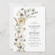 Fleur sauvage Boho Faire-part de mariage. Cette élégante faire-part de mariage de fleur sauvage fantaisiste présente une belle aquarelle peinte à la main rose vif, bleu poussiéreux et des fleurs pressées vert sauge avec du texte noir sur un arrière - plan blanc. L'arrière comprend un joli bouquet. Recherchez les éléments correspondants dans la collection de Mariages Fleurs sauvages.