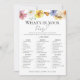 Voici la carte de jeu "What's In Your Purse", conçue par CaMiDesigns. Ce délicieux jeu de douche nuptiale présente une belle aquarelle design floral, mettant en vedette des fleurs sauvages de printemps colorés qui incarnent parfaitement une esthétique boho. C'est une façon amusante et engageante d'amener les invités à interagir et à partager les rires pendant la fête. Idéal pour les douches nuptiales, cette carte de jeu ajoute une touche de charme et de créativité à votre événement. Pour obtenir de l'aide sur les commandes, l'expédition, les informations sur les produits, etc., veuillez contacter directement le service à la clientèle de Zazzle.