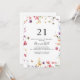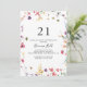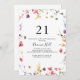 Cette invitation classique à la fête du 21ème anniversaire, colorée et florale sauvage, est parfaite pour une fête d'anniversaire rustique. Le design présente des fleurs sauvages jaunes, violettes et blanches avec du feuillage dans un arrière - plan rose et vert aquarelle.