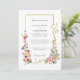 Bordure dorée gracieuse avec des parchemins élégants agrémentés de fleurs sauvages pastel boho chic romantique en bleu pâle, rose et jaune. Cette charmante collection est le complément parfait à votre mariage sur le thème du printemps, de l'été ou du jardin.