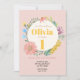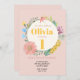 Célébrez le premier anniversaire de votre petite fille avec cette belle couronne de fleur sauvage aquarelle rose avec une police rétro jaune ensoleillée.
