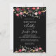 Ce brunch fleur sauvage de jardin et une invitation à la douche à bulles est parfait pour un wedding shower moderne. Le design présente un assortiment multicolore de fleurs sauvages roses, rousses, violettes, jaunes, blanches, violettes, rouges, bordeaux dans un arrière - plan noir.