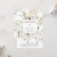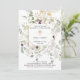 Ces magnifiques invitations au baptême présentent un bouquet éparpillé de beaux fleurs sauvages délicats, vert sauge clair, taupe et violet, aux accents géométriques faux or assortis et croisent sur un arrière - plan blanc. Un design élégant et magnifique.