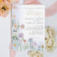 Cette œuvre d'art présente des fleurs bleu pâle, rose et lavande pour une conception asymétrique tendance et moderne de fleurs sauvages. Associée à une police de caractères script élégante et une police sérif à paillettes dorées de style Art déco. Nous pouvons personnaliser ces champs de texte pour votre occasion, il suffit de nous envoyer un message. Cette œuvre d'art à l'aquarelle a été peinte par l'artiste et designer licencié internationalement, Audrey Jeanne Roberts, copyright. Votre photographie est placée derrière une douce brume rose pâle.