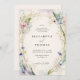 Délicat fleur sauvage et verdure, peint en aquarelle douce aux tons violet, lavande, rose et vert, se mêlent gracieusement à un arrière - plan écru pour créer un cadre floral élégant pour ce faire-part de mariage. Le design est un mélange intemporel de sophistication classique et le charme ludique des fleurs sauvages, parfait pour un romantisme moderne. Idéale pour un mariage de printemps ou d'été, voire d'automne ou d'hiver, cette invitation convient à la fois à l'élégante mariée bohème et à ceux qui planifient une fête de jardin, une fête de jardin ou un événement formel dans les jardins d'un château. Un beau choix pour les épouses qui recherchent une touche de fantaisie de la nature avec une élégance raffinée.