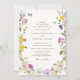 Ce Faire-part de mariage présente une couronne fleur sauvage aquarelle et des illustrations de papillons. Personnalisez avec vos informations ou cliquez sur "Cliquez pour customiser plus loin" pour modifier les styles, la taille et les couleurs des polices.