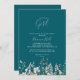 Ce vert fleur sauvage c'est une invitation baby shower fille est parfait pour un baby shower moderne ou saupoudrer. Le design se compose de fleurs rose aquarelle, rousse, violette, rouge, bordeaux, jaunes, blanches et de papillons à la verdure soigneusement entassés dans d'élégants bouquets floraux.