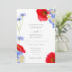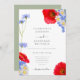 Beaux fleurs sauvages d'été botaniques peints à la main dans les tons vert bleu jaune. Fleurs y compris des fleurs de maïs, marguerites, pavots et ne m'oubliez pas. Facile à utiliser modèle avec script de typographie moderne et élégant. Parfait pour un mariage d'été ou de printemps à thème fleuri et botanique. OEuvre originale de l'artiste Catherine Sweetman