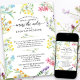 Fête des mariées fleur sauvage de l'autre côté de l'invitation miles avec douche de nuptiale modifiable par poème mail. Un design fleur sauvage délicat et joli aquarelle avec des fleurs de prés délicates en rose lilas bleu et jaune. Invitation modèle à la mode féminine avec calligraphie et élégante typographie. Parcourez mon magasin et la collection Meadow Fleur sauvage pour trouver d'autres styles et articles correspondants.