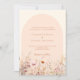 Une élégante invitation au mariage. Arrière - plan de couleur crème, beige et arche couleur pêche. Décoré de fleurs sauvages couleur eau dans le beige, rose. Retour : ajoutez l'URL/le lien à votre site Web mariage pour plus de détails et/ou RSVP.