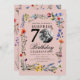 Un design élégant "70th Birthday" soirée invitation avec photo personnalisée, typographie moderne et motif fleur sauvage.
