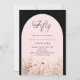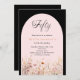 Une élégante invitation fleur sauvage. Un arrière - plan noir et une arche rose. Décoré de fleurs sauvages couleur eau dans le beige, rose.