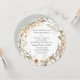 INVITATION AU FORMAT ROND. Chute poussiéreuse rustique, mais discrètement élégante, feuillue, florale d'automne avec de minuscules fleurs sauvages, fougères et feuillage feuillu sur un arrière - plan blanc cassé doux. L'envers a la même couronne florale sur un arrière - plan de sauge chaud et muet (qui peut être changée en n'importe quelle couleur que vous désirez). Un ensemble complet de produits est disponible à l'achat dans la collection. MSP0109